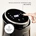- 👩🍳【PANTALLA LED DIGITAL Y MENÚS PREDEFINIDOS】Crunchy! Te permite, de forma cómoda y simple con su pantalla digital táctil, tener controlado el proceso durante cualquier instante. Regula cómodamente la temperatura (entre 80 y 200 grados) y el tiempo de cocción, el menú predefinido que quieras utilizar o el temporizador para una fritura sana y perfecta.