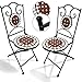 Mesa y Sillas Mosaico Set 1+2 - Redonda, Rojo-Blanco, Cerámica - Mobiliario Mosaico, Set Muebles Jardín, Juego Terraza, Conjunto Balcón
