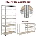 - Modular y Adaptable: Con 5 baldas ajustables, esta estantería se adapta a diferentes necesidades de almacenaje. Úsala como librería, armario de garaje o estantería de cocina.