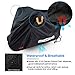 - Mejor protección para tu motocicleta: nuestra funda tiene 4 agujeros de tela antirrobo, incluso si no hay espacio disponible en las ruedas delanteras, te permiten bloquear la funda fácilmente. No tienes que preocuparte por el óxido ni los problemas de metal, y ideal para exteriores. Una banda reflectante de advertencia en la parte delantera y trasera te permite ver claramente la ubicación de la moto por la noche y evitar cualquier colisión.