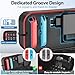 - DISEÑO DE RANURAS: La funda para nintendo switch tiene ranuras de corte preciso especialmente diseñadas para almacenar joycon izquierdo y derecho y adaptador, más práctico que los productos comunes en el mercado en tamaño similar. El diseño separado evita que la clavija de metal del adaptador arañe el joycon. Con espuma suave interior, el estuche para nintendo switch proporciona una mejor resistencia al choque y a la prensa para proteger la consola y accesorios de switch