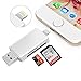 - 3 en 1 lector de tarjeta con tres interfaces – Conector de flash para dispositivos iOS; Conector micro USB para dispositivos Android; es conector USB para PC/ordenador/Macs