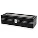 Readaeer Relojes Caja para 6 Relojes Buzón Memoria con Tapa de Cristal Negro de Piel sintética