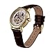 Reloj Automatico Rotary Para Hombre Con Pantalla Blanca Analogica Y Correa De Cuero Marron