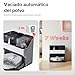 - Innovación en limpieza manos libres: La estación base puede ser autolavado de la mopa/vaciado automático del polvo/secado con aire caliente/rellenado automático del depósito/autolimpieza del muelle. La nueva función puede secar el depósito de aguas residuales mientras se seca la mopa. Una bolsa de polvo de 2,5 litros que dura hasta 7 semanas y un depósito de agua independiente de 3 litros con un depósito de suciedad de 2,5 litros garantizan ciclos de limpieza eficientes.