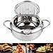 Sartén profunda, acero inoxidable estilo japonés Tempura Sartén Sartén profunda con termómetro Cocina de inducción Olla de pollo Herramientas de cocina para cocinar(Largo 24cm)