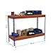 Simon Rack Banco de Trabajo Taller, Mesa de Trabajo Taller, Carga Máxima 400 kg, 900x1800x750 mm, Bricolaje, 2 Alturas, Azul/Naranja/Madera - BT-Basic