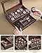 - [2 niveles para relojes y más] Esta caja para relojes cuenta con 12 ranuras en la parte superior para relojes con un tamaño de pantalla de hasta 48 mm. Varios compartimentos en el cajón inferior pueden almacenar tus anillos, pulseras y otras joyas
