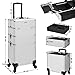 - [Bloqueable y fácil de transportar] Gracias a los cierres y a las 4 llaves, esta maleta de maquillaje protege tus productos de belleza. Las 4 ruedas son extraíbles, fáciles de instalar y giran 360°, puedes moverla a cualquier lugar