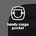 - Bolsillo de carga con tapa elástica y broche de presión que mantiene los artículos en el bolsillo incluso sobre los topetones
