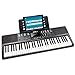 Teclado RockJam compacto de 61 teclas con soporte para partituras, fuente de alimentación, pegatinas para notas de piano y lecciones de piano simples