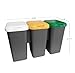 Tontarelli Papelera de reciclaje con 3 compartimentos, 75 litros en total, dimensiones 77x32x48 cm