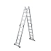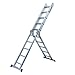 - Flexibilidad con seguridad: Reforzada por bisagras y asegurada por cerraduras de seguridad, la forma de la escalera puede ser fácilmente modificada: andamio, marco en A, escalera de mano, escalera recta y más