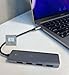 - [ Más Estable y Seguro ] Este Hub USB C tiene un puerto de alimentación, a través de cual puede conectar una fuente de alimentación para garantizar el funcionamiento estable al conectarse a los dispositivos que requieren mucha energía, tal como disco duro SSD HDD de 3,5". Ofrece protección contra sobrecorriente, sobretensión y cortocircuitos, garantiza la seguridad de sus dispositivos, garantiza la seguridad de los datos y todos los periféricos funcionan de manera óptima.