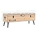 - También se puede utilizar como puf o caja de almacenamiento. El cómodo banco es de madera de abeto maciza y su asiento acolchado está tapizado en tela