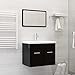vidaXL Conjunto de Muebles de Baño Aseo Inodoro Armario Lavabo Fregadero Escurridor de Empuje Grifo Espejo Tocador Contrachapada Negro Brillante