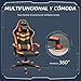 Vinsetto Silla Gaming Silla Gamer Basculante con Altura Ajustable Giratoria Reposacabezas y Lumbar Desmontable Silla de Oficina Estudio Naranja