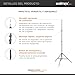 - COMPACTO Y ESTABLE - capacidad de carga 3,5 kg, estable gracias a las columnas centrales de 25 mm de diámetro, altura de trabajo confortable de 71 a 208 cm, con una gran superficie de apoyo de 72 cm y un soporte seguro, ideal para el flash o la luz de anillo