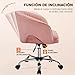 Yaheetech Silla de Oficina Silla de Terciopelo con Rudas Giratorias de 360° con Función de Inclinación Sillon para Trabajo Silla Altura Ajustable Tapizada de Terciopelo Rosa