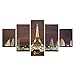 ZJOQRE Impresión HD Pintura 5 Piezas Vista nocturna de la fuente de la Torre Eiffel Cuadro En Lienzo, Cuadros Modernos Salón Decoracion De Pared Canvas Prints Lienzo Modernos Cuadros Decoración Hogar